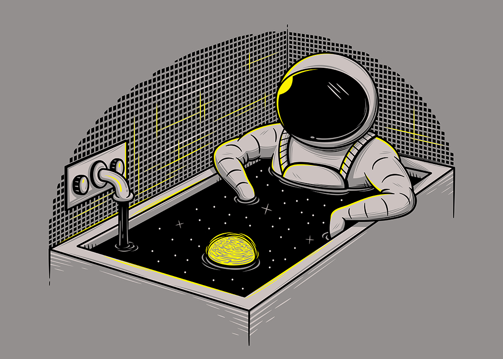bath; space; universe; infinity; surrealism; astronaut; stars; planet; relax; summer; humor; funny